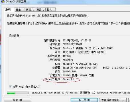 2、彈出DirectX診斷工具,在系統(tǒng)選項(xiàng)卡里面就可查看到電腦的dx版本了