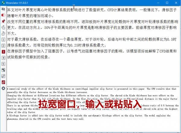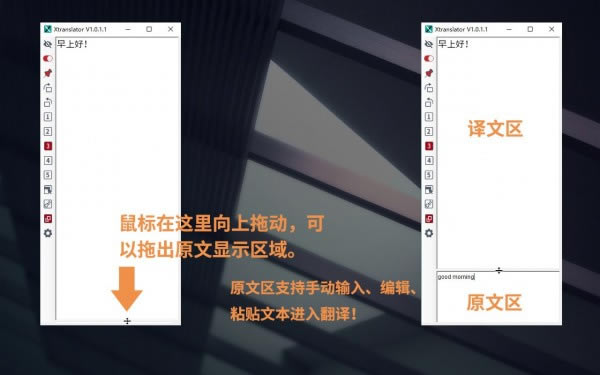 您可以拖出原文區域。原文區域可修改、輸入、粘貼入,然后自動更新翻譯。