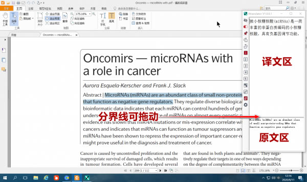 有些情況下從PDF頁面中提取復制的文本可能有錯誤的字母或單詞。 可以自己在原文區域中修改一下。修改后會立即自動重新翻譯。