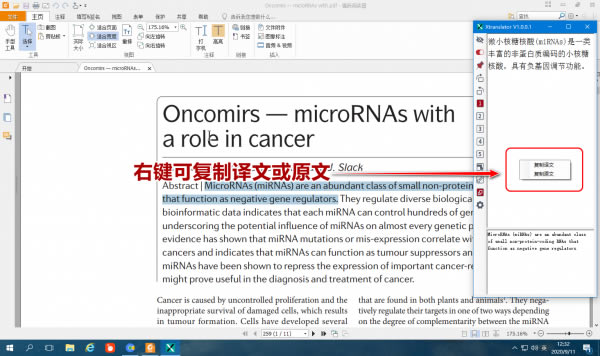 c、文檔中選中一段話(或一句話或一個單次),然后雙擊右鍵出現翻譯。
