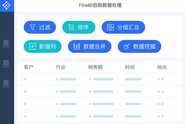 用戶可以通過FineBI以可視化的形式來對數據進行多種操作,如過濾、分組匯總、新增列、字段設置、排序等功能,完完全全掌控數據。