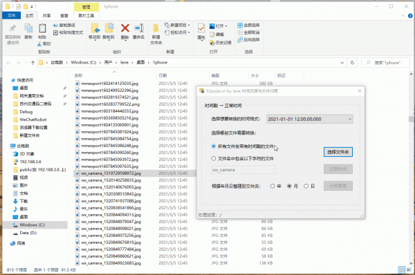 時間還原與文件歸理可以把微信照片時間戳還原,按年月日歸整,先把時間戳改成人性化的時間格式,再批量歸檔到同一個日期/月份的目錄下!