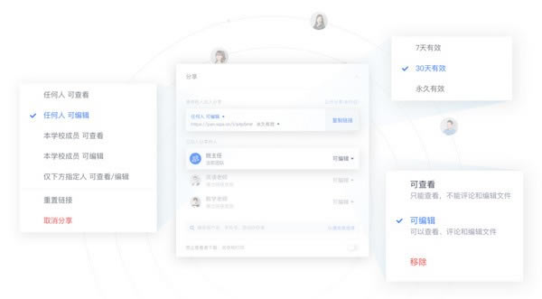 教學管理:每個文檔可設置指定人查看和編輯,權限清晰易管控,避免學生個人信息和重要教學資料 泄露。