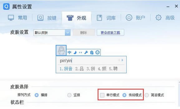 單行模式下,默認使用單行皮膚,若您不習慣,也可以在屬性設置——外觀下,更改成傳統模式皮膚。