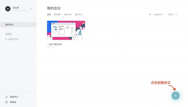「我的會(huì)議」列表右下角點(diǎn)擊「+」創(chuàng)建會(huì)議。