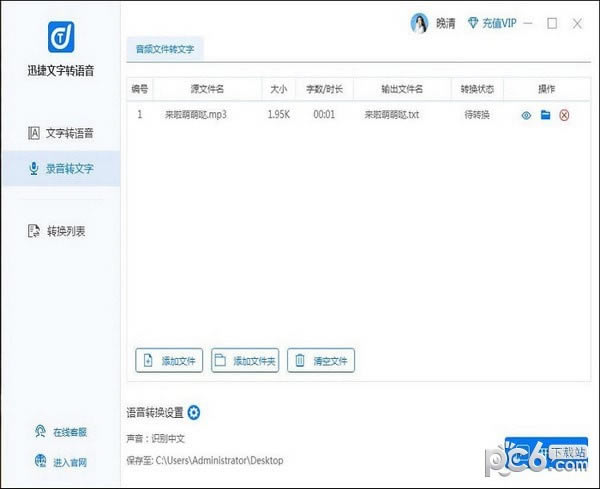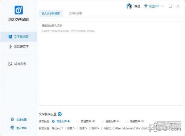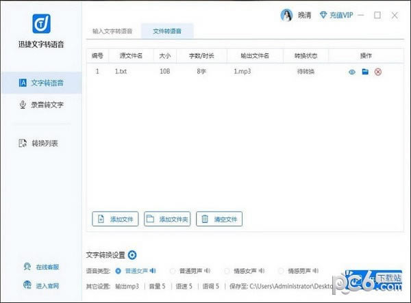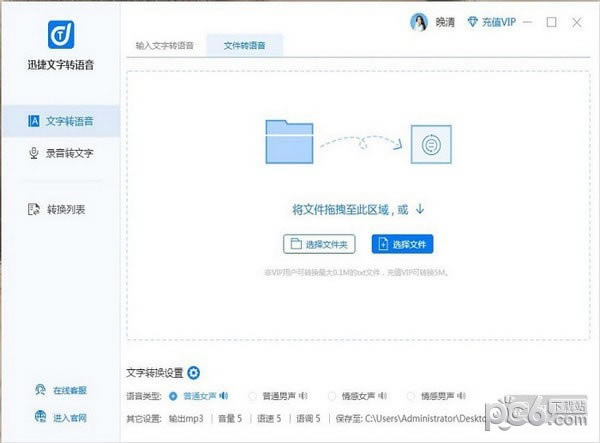 迅捷文字轉(zhuǎn)語(yǔ)音軟件是一款好用的音頻文件轉(zhuǎn)換器,可將文字轉(zhuǎn)換成為MP3、WAM、AMR、WMA等語(yǔ)音格式,軟件不僅可以完成文字轉(zhuǎn)語(yǔ)音,還可實(shí)現(xiàn)音頻、錄音文件轉(zhuǎn)文字,用戶只需上傳需要轉(zhuǎn)換的文件即可一鍵轉(zhuǎn)換。