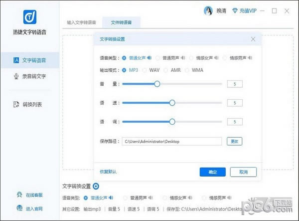 用戶可在此設(shè)置「語(yǔ)音類型」、「輸出格式」、「音量」、「語(yǔ)速」、「語(yǔ)調(diào)」以及「保存路徑」。